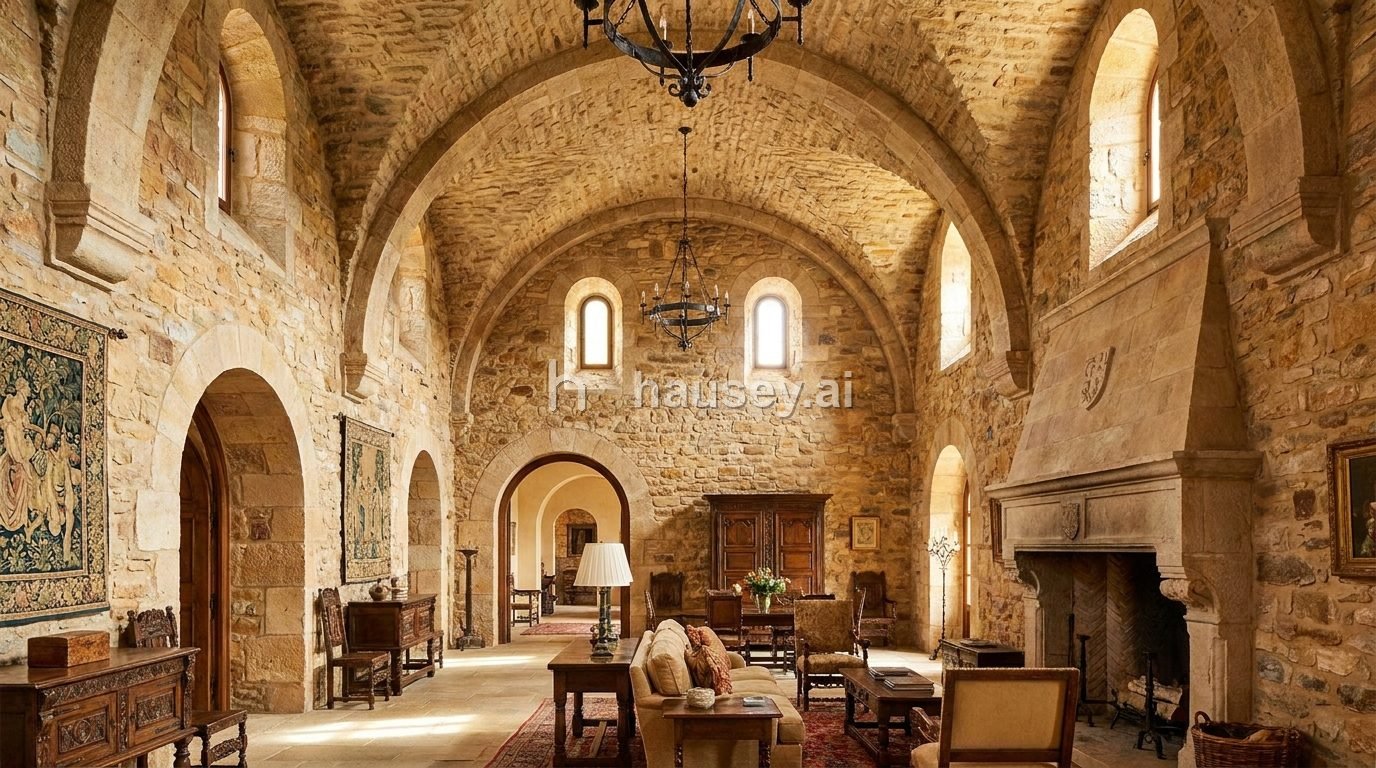 The signatures we enforce: Round arches, barrel/groin vaults, thick walls, small windows, carved portals. Palette stays in the stone, earthy palettes. range.